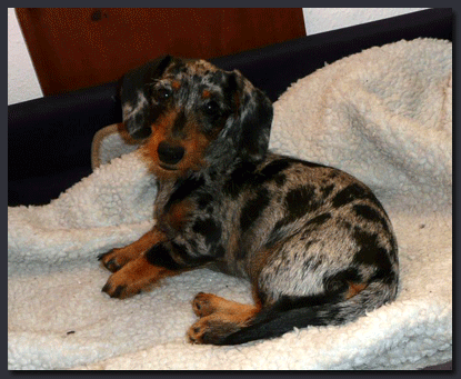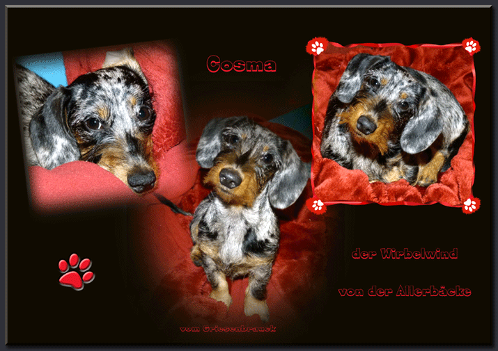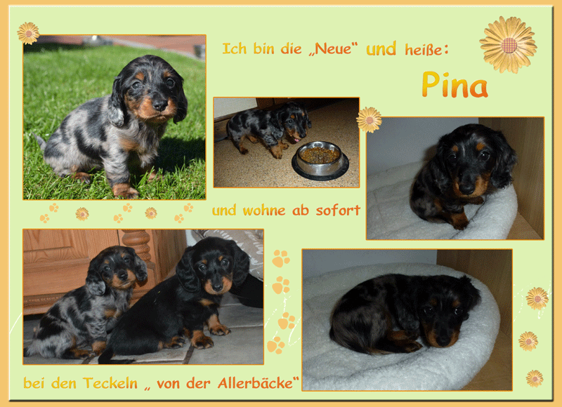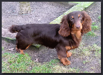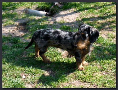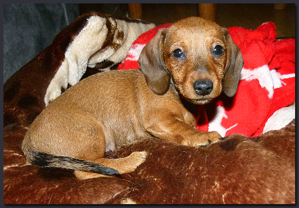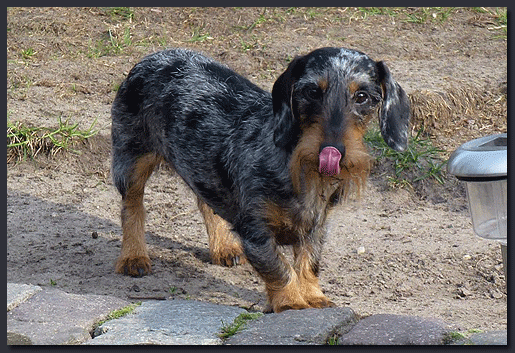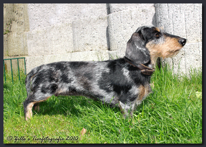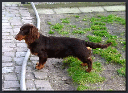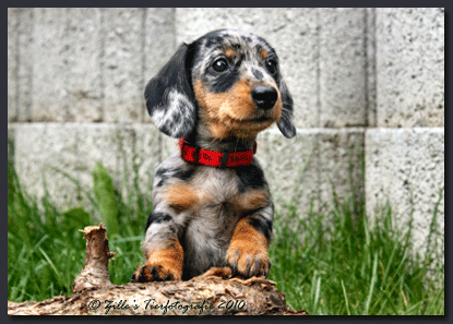 | Wir haben ein neues Familienmitglied ... Sie stammt aus dem Zwinger "von der Waldhöhe" in Rangsdorf und heißt "Jill" und ist eine rote rauhhaarige Kaninchenteckelhündin. |
